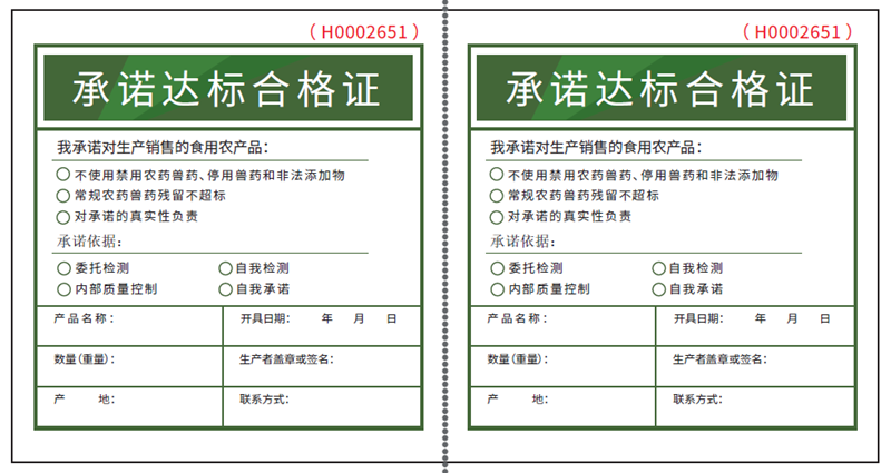 食用農(nóng)產(chǎn)品生產(chǎn)者開具承諾達(dá)標(biāo)合格證要堅(jiān)持“誰生產(chǎn)、誰用藥、誰承諾”的原則,據(jù)實(shí)勾選選項(xiàng),自主開具,確保承諾達(dá)標(biāo)合格證規(guī)范有效開具。